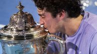 João Fonseca beija o troféu de campeão do ATP 500 da Basileia • Reprodução/X @atptour