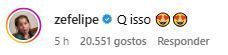 O cantor Zé Felipe, 27, deixou mais um comentário romântico em uma publicação da cantora Ana Castela, 21. Na noite deste sábado (25), ela posou pronta para um show em Portugal, que faz parte da turnê que ela apresenta nas cidades de Porto e Lisboa.